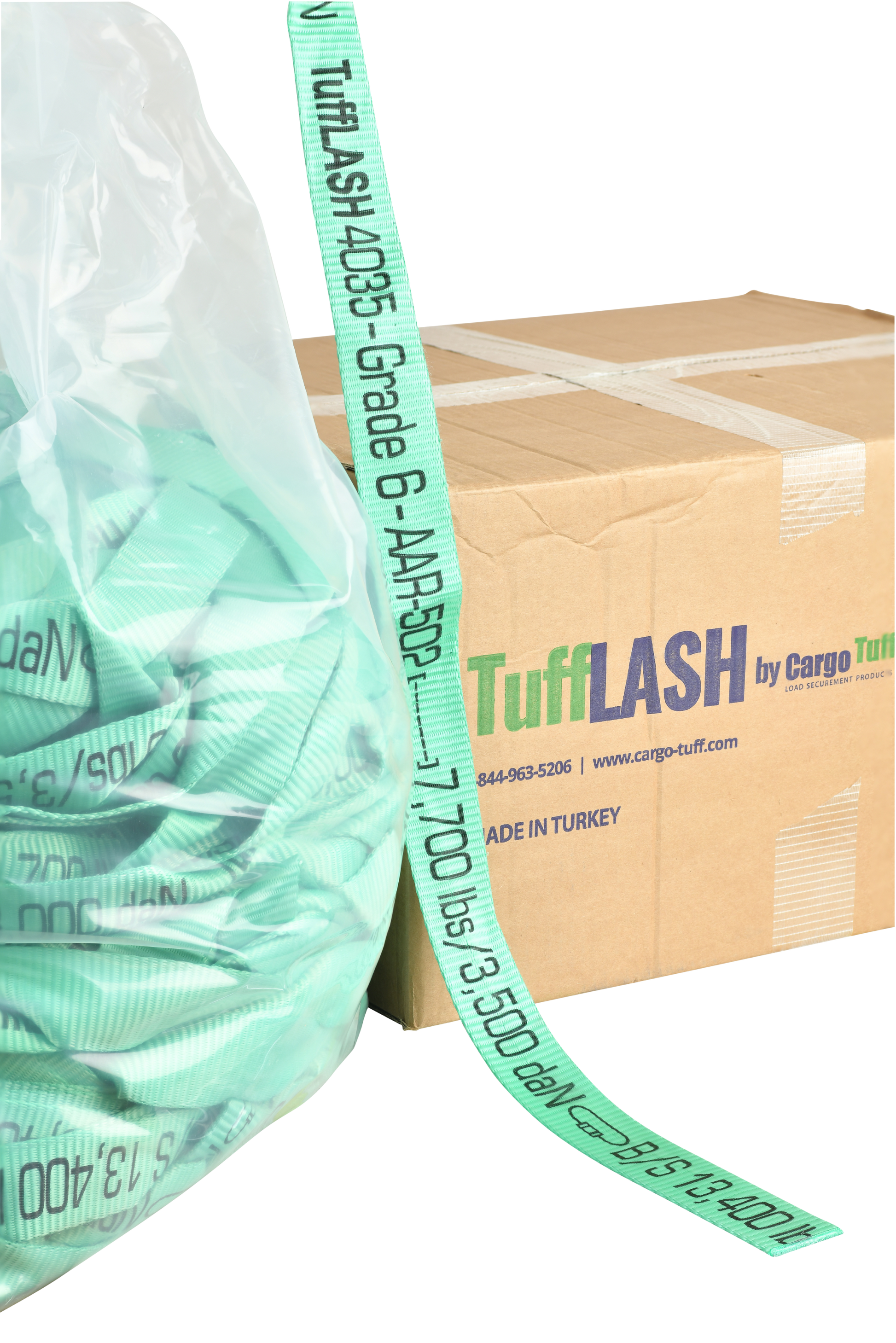 Secure your heaviest loads with TuffLASH, our premium woven lashing solution engineered for maximum strength and performance. Manufactured in our state-of-the-art facility, TuffLASH is built to perform in the most demanding shipping environments.
